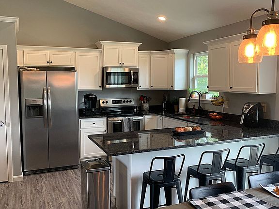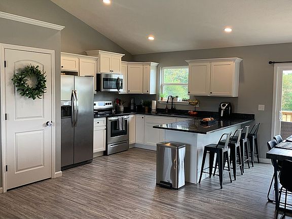 Want the feel of the country, but still be close to town? This is the perfect location for you! Located minutes from Elizabethtown and with easy access to Fort Knox. This 3 bedroom, 3 full bath home with an attached 2 car garage is situated on a cul-de-sac featuring a large 1.3 acre lot with panoramic views of farmland and wildlife. Sit on the upper back deck in privacy and watch the deer! This house features granite countertops throughout the house, white cabinets, and a large pantry! The lower level has an additional extra large bedroom, full bathroom, family room and walks out to a concrete patio! The main living area includes an open living concept with extra large windows and vaulted ceilings! Vaulted ceilings, a walk in closet, and full 6 ft. shower are included in the master!