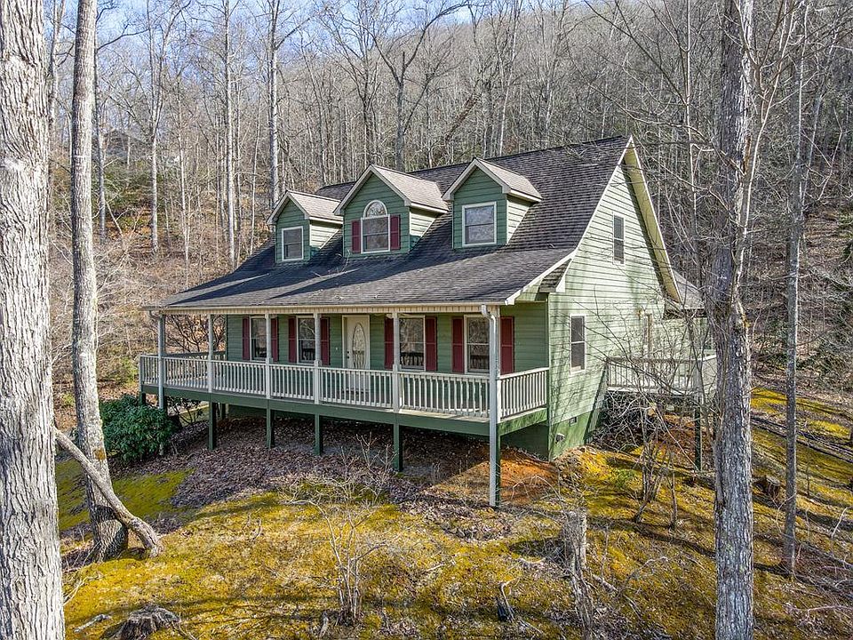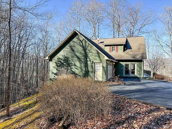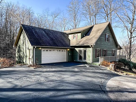 MOTIVATED SELLERS. This mountain home is COZY, INVITING, and SPACIOUS and just 15 minutes from downtown Franklin. Sit on the covered porch and enjoy the fantastic mountain views and listen to the stream that trickles down one side of the property after a good rain. Other perks include the community maintained paved road that leads to a paved, flat driveway right to the door of the home. Main level living features beautifully maintained hickory floors, a stone, gas fireplace, a large primary bedroom with ensuite bath with a dual vanity as well as a large walk-in closet. The open floor plan is great for entertaining guests or just watching TV in the living room while you cook in the kitchen. There is also a laundry room and 1/2 bath just past the kitchen with doors leading to the garage and another to the back porch. Upstairs you will see 2 large bedrooms and another full bath between them. If you love closet/ storage space, this house does not disappoint! There are plenty of walk-in closets and extra storage in the attic with pull down stairs for easy access. Must see in person to fully appreciate! Photos updated with some drone shots for aerial views and with empty rooms.