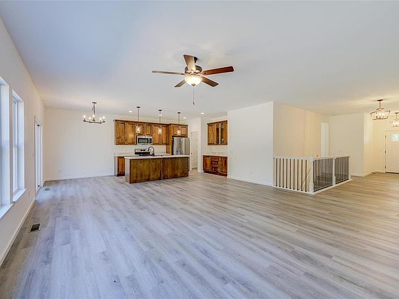 Ranch home sitting on 3 acres with public water and Gateway Fiber* Exterior offers vinyl siding* enclosed soffits & fascia* partial brick front* side entry garage & patio* Interior offers 9 ft ceilings* vinyl plank flooring* white doors & trim with 4 1/4 baseboards* main floor laundry* kitchen with center island, walk-in pantry & stainless appliances* master suite with luxury bath & walk-in closet* full basement with rough-in & sump pit*