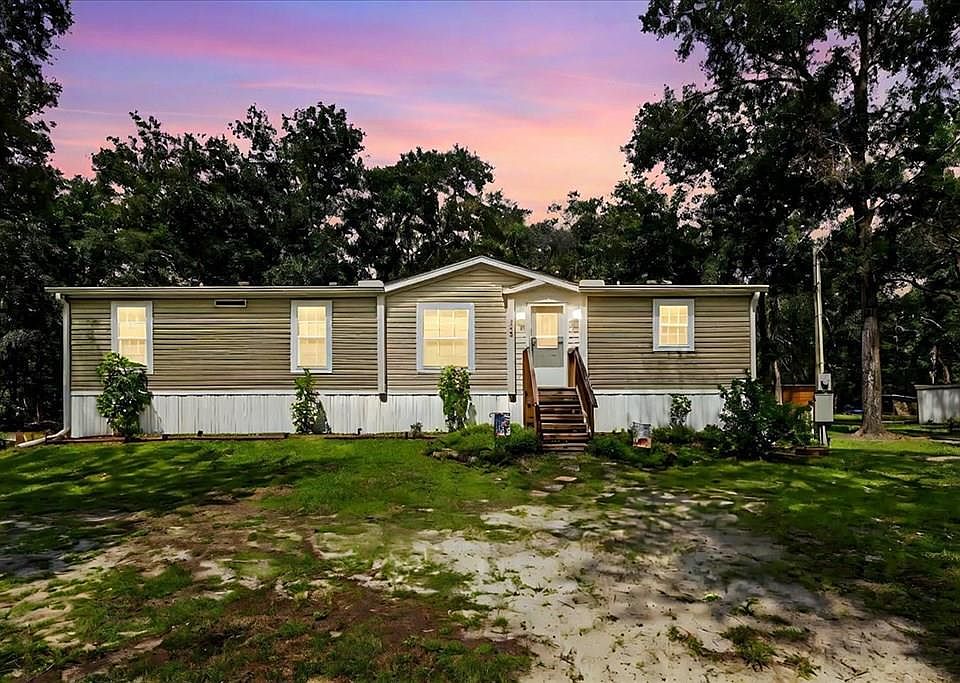 Discover your perfect getaway near the Suwannee River! This charming mobile home is nestled on just over 2 acres of beautifully maintained land, offering privacy, convenience, and a host of outdoor amenities. This spacious mobile home offers three comfortable bedrooms and two full bathrooms, perfect for families or those seeking a peaceful retreat. The living space is bright and inviting, featuring an open floor plan that seamlessly connects the living room, dining area, and kitchen. The kitchen is designed for both functionality and style, with modern appliances, plenty of counter space, and abundant storage options. The master bedroom includes an en-suite bathroom with a relaxing soaking tub and a separate shower, providing a private oasis within your home. Two additional bedrooms offer ample space for guests, a home office, or a growing family. This property comes equipped with two sets of utilities, making it ideal for a RV hookup. Step outside to your expansive deck, perfect for outdoor entertaining or simply soaking up the sun. The highlight is the sparkling pool, offering a refreshing escape during warm Florida days. Located just a short distance from the Suwannee River, you'll have easy access to boating, fishing, and all the recreational activities this iconic river has to offer. Whether you're looking for a weekend retreat or a permanent residence, this home offers the best of both worlds. Call today to schedule your showing!