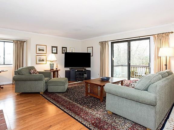 Emerson model in excellent condition! EIK with gas cooking, LR with gleaming hardwood floors, gas log F/P, D/A, and sliders to an expanded deck overlooking open space. Thermopane windows with energy efficient additional storm windows. The MBR also has hardwood floors, walk-in closet and a new bathroom with a pocket door. The lower level has a second B/R, office with an added window, full bath and laundry area. Quiet location set back on North Trail. The garage has a work area set-up and is included in the sale. District tax is paid quarterly. Pleasure to show!