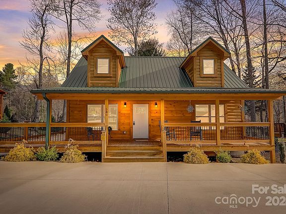 Perfection! This better-than-new 3 BR 2BA log-sided home central to Maggie Valley has a strong established rental history & is being sold completely turn-key! Everything goes! Ready to move or ready to rent. Easy, year-round paved access means you have no worries about living or renting year-round. The home features an open living plan with a stone fireplace (gas logs for convenience), lots of fixed glass to let in the natural light, granite counters & stainless appliances, & vinyl plank flooring. The primary is on the main with a double vanity bath & laundry closet. Upstairs includes 2 good sized BR & a full bath. There is a loft/office/sitting space. The beds in the primary bedroom & larger upstairs include electric beds! There s a large covered deck that wraps around the home with a like-new hot tub on the back deck. Circular concrete drive for plenty of parking. Subject to NC Vacation Rental Addendum. All current rentals must be honored for 180 days.