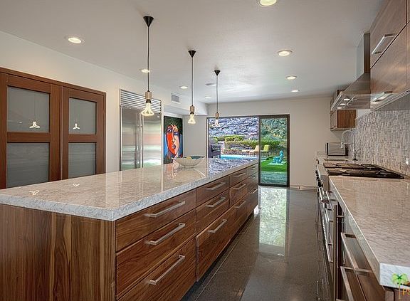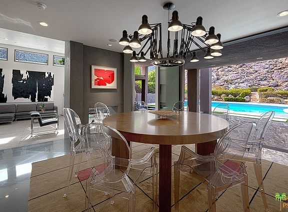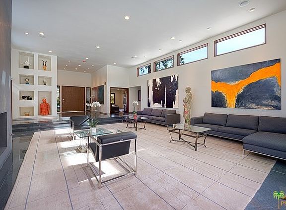 Indulge in Luxe Living at this resort style home in Tennis Club South. From the sleek modern walnut cabinetry to the flowing granite flooring throughout, this home invites you to relax and enjoy the spectacular up-close mountain views from inside and out. Enter this home thru the massive pivoting front door. The soaring ceilings have views of the San Jacinto mountaintops thru multiple clerestory windows. The living and dining room share a two sided fireplace. The spacious kitchen is open and airy with plenty of room to cook that gourmet meal or have a cooking class! The master suite has the most extravagant bathroom with two water closets, two walk-in closets, separate vanity areas, indoor and outdoor shower. Back behind the pool is an elevated view deck tucked up against the boulders at the base of the breathtaking mountains. This distinguished residence is perfect for those seeking the ultimate in prestige and exclusivity. Palm Springs glamour meets modern, sexy sophisticate!