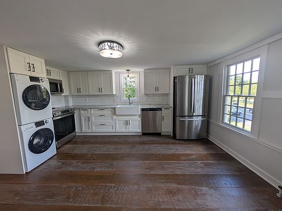 Step into history with this beautifully renovated one-bedroom apartment with a den, set within a charming 1740's building. Thoughtfully updated, this home blends timeless character with modern comfort. Original wide-plank hardwood floors run throughout, complementing a kitchen outfitted with new cabinetry and appliances and a classic farmhouse sink. A fully renovated bathroom includes a claw-foot tub. Two decorative fireplaces and standout architectural details create striking focal points in both the kitchen and living areas. Enjoy a cup of coffee or hot cocoa on the landing deck, a cozy spot to unwind. The building offers a welcoming, smaller community feel that adds to its overall charm. Conveniently located near shops, restaurants, and schools, directly across the street from Cheshire's newly developed town park and amphitheater, plus the highly anticipated Shops at Stonebridge opening this month nearby, this apartment delivers the perfect mix of historic character and contemporary living. A private garage rental is also available for an additional $135 per month. No pets allowed.