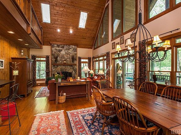 TURNKEY - FULLY FURNISHED! Ideal cottage getaway on 11th fairway of Lake Toxaway Country Club golf course. The home has cathedral ceilings, a stone fireplace, hardwood floors in the great room and the master and tile in the kitchen, laundry, and baths. The rustically elegant interior is bathed with light from the wall of windows. The large covered deck with a view of the golf course is perfect for relaxing or dining al fresco. The single carport, 7-year-old roof and generator were added by the current owner. Be right in the middle of the many activities available in Lake Toxaway. "Karlayne Cottage" is just a short walk to the Lake Toxaway Country Club, the Lake Toxaway marina, tennis courts, croquet courts, and pool. The country club will be building a new pool and dining complex in the fall. Membership to the country club is available by application. Additional fees apply. Lake Toxaway is the largest private lake in North Carolina. The lake, available to property owners, their families and guests, has wonderful fishing, including walleye, large and small mouth bass, trout, and brim. There is water skiing, tubing, kayaking, paddle boarding, fishing, and swimming, but no jet skis. The Property Owner's Association will be opening the new Nature Park with a pavilion, playground, and hiking trails in June. More than 45% of the county is National and State Parks where waterfalls, fly fishing, and hiking trails abound! Average July highs are 77 degrees with lows of 57 degrees. Winter temperature have an average high of 50 degrees and lows of 27 degrees. Come enjoy the beauty and temperate climate that this 3000+ foot elevation has to offer!
