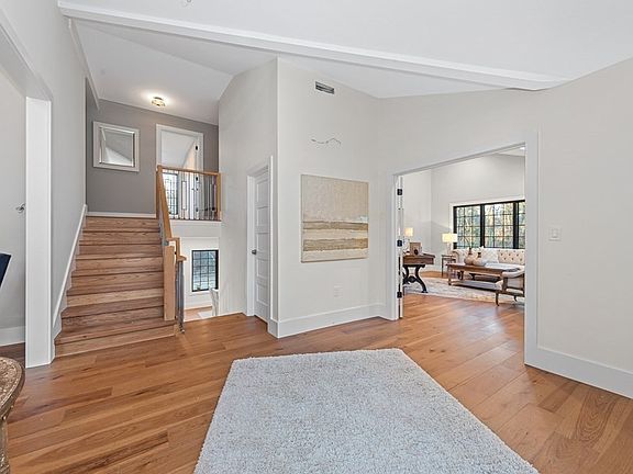 Re-priced to sell. Mid Century masterpiece. Gut renovation and new addition create a California-Cool contemporary look.South side location near schools, and highway. Don't be fooled: the house is much larger than it looks. Two-story foyer flanked by a spacious home office and living room with vaulted ceilings. Large Pella picture windows provide incredible light and views A few steps down offers an open floor plan to entertain family and friends with a white and walnut island kitchen, dining area, sitting area, and family room with fireplace. Oversize windows look out to expansive private yard and conservation land. First-floor main bedroom with vaulted ceiling, private deck and spa-like bathroom. Upstairs are two spacious en suite bedrooms, laundry room, and a bonus room with a large covered porch and designated full bath. This home offers a blend of contemporary design with appreciation and access to its beautiful setting State-of-the-art multi-zone hydro-air/HVAC.