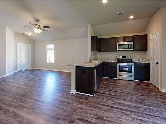 The stunning Armstrong plan is rich with curb appeal with its welcoming front yard landscaping and covered front porch. This ranch-style (slab on grade - no basement) home features an open floor plan with 3 bedrooms, 2 bathrooms, an open living area, and a kitchen equipped with energy-efficient stainless appliances, generous counterspace, pantry, and eat-in dining area.