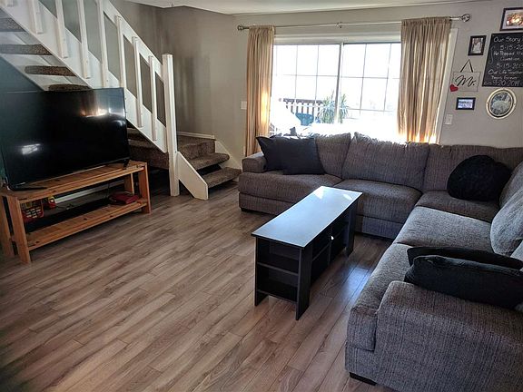 Located in the quiet Pepper Tree Subdivision, this adorable cottage-style townhome sits off a tree-lined street and offers convenient access to nearby amenities. The homes main floor is accentuated by a powder room and an open-concept living room and kitchen space. Abundant counter space is put to use with the eat-at area making this home ideal for comfortable living. Under the stairs, there is additional storage space as well as space for a stackable washer and dryer. Upstairs, the master bedroom presents a walk-in closet, and wood laminate flooring throughout the home make it low-maintenance. Youll appreciate the size of the bedrooms, the full bathroom, the private backyard deck, and off-street parking spaces as well as the lock-and-leave luxury.