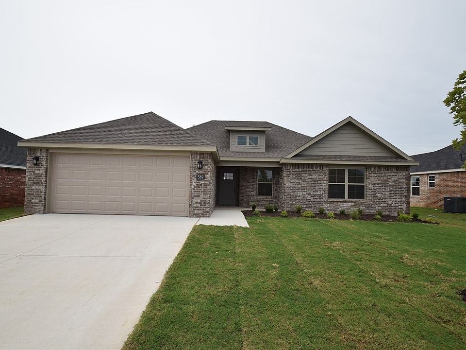Located in beautiful new Hickory Meadows Subdivision which boasts a resort style community pool and park area with playground, this 3 bed 2 bath home is the ideal family home. As you walk up you're greeted with an elegant entryway with craftsman front door. The living room boasts a beautiful brick, natural gas fireplace. The kitchen offers quatz counters, a pantry, ample custom cabinets, and stainless steel appliance package, and plumbing stub out for gas range. This split floor plan also provides a spacious owner's retreat with whirlpool tub, shower, and walk-in closet. The laundry room isn't to be overlook either, with ample cabinets and counter space. And, last but not least, you'll appreciate the generous lot size, fully sodded lawn, gutters, and professional landcaping. Let's make this house your home! Schedule your showing today. *Please note gas logs are not included for liability reasons.*