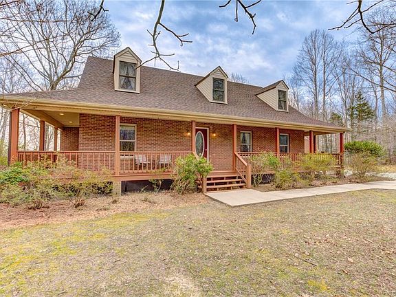 Amazing ALL BRICK WATERFRONT Custom Cape on 19 acres! Quality built & well maintained home with a 1st Floor Master Suite, vaulted Great Room w/a handsome Stone Fireplace, Hardwood Floors in Great, Dining Rm Foyer and steps, Large open Kitchen with Stainless appliances, tile backsplash, 2 pantries, barstool area at counter & large eat-in area w/ bay window and tile floors! All tile baths, solid wood doors- 1st fl, New carpet in Master & master His & Hers closets, Jacuzzi tub to relax in! Large 24 x 36 - 2 car detached garage with kitchen, full bath, wash/dryer hookups, pull down attic storage & living space all in garage! Enjoy nature from the 13 x 11 screened in porch w/ tile floor, grow flowers in the green house, fish, hunt, kayak or swim in the tranquil setting! Wonderful full front wrap porch with swing and recessed lighting + rear screened porch, Open field for additional barn, more land could be cleared so bring the horses! Propane tank behind pole barn feeds fireplace and the gas grill. Simple stunning!