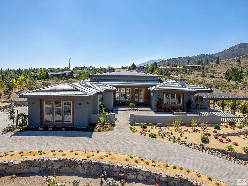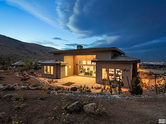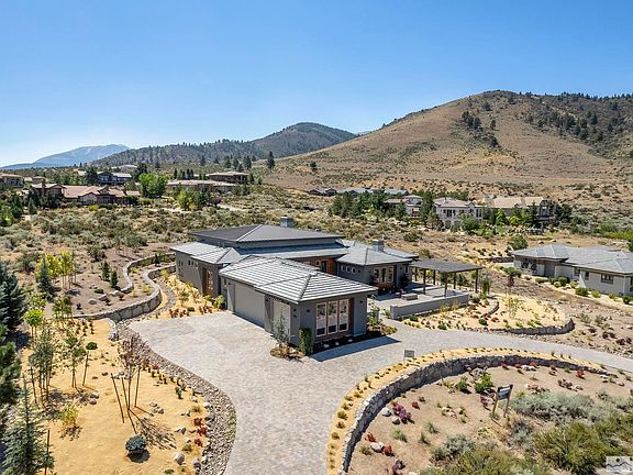 Newly constructed one story home on a quiet cul-de-sac in ArrowCreek in "The Reserve" community. Enter the home through the walled front private "PARTY" yard with gorgeous city views & a built in gas firepit. The open floor plan flows from inside to outside with a back yard that has a large covered patio with multiple level rock walls along with views of Mt Rose & only steps away from the 9th hole of the Challenge Golf Course. Come enjoy the ArrowCreek lifestyle. SELLER FINANCING IS POSSIBLE!, The builder and owner thought of every amenity to make this home extra special. The Great room has 18 foot ceilings, a 48 inch fireplace with built-in side cabinets, The "Flex Room" has a lighted custom slat designer wall accent and a bar area with a 57 bottle capacity wine refrigerator. Engineered French Oak flooring throughout. Entertaining is a breeze in this open kitchen with an island that has 12 feet of seating space. Floor to ceiling solid maple cabinetry with 9 ply plywood boxes, quartz countertops & a large walk in pantry with a butcherblock counter. Monogram appliances include induction cooktop, double oven, 48" refrigerator and drawer microwave. There are 4 ensuite bedrooms, 2 with outdoor access. The Primary bedroom has a fireplace, heated bathroom floors & a large walk in closet with built in dresser. A very large shower with dual showerheads plus a relaxing soaking tub. The laundry room and "drop" area just off the garage is ideal for backpacks, jackets and muddy boots! Amazing light fixtures throughout the home with lots of natural light. Oversized 3 car garage has 220 outlet prewired for EV charger. The property is over one acre, well thought out landscaping with lots of pavers and trees/shrubs makes it a private oasis in both the front and back yard with the bonus of not much maintenance. May be room to build a casita or possibly a pool on the naturally landscaped west end of the property. List of multiple features and SRPD in documents tab. The ArrowCreek community is located approximately 20 minutes from the Reno/Tahoe International Airport and around 35 minutes from Lake Tahoe. Enjoy the many amenities the community has to offer including a Residence Center, 3 pools, hot tub, pickle ball and tennis courts, fitness center, basketball, soccer fields, parks, hiking trails and a 24/7 staffed security gate. The Club at ArrowCreek recently completed over $65 million in renovations. It has 36 holes of golf on two championship golf courses, an indoor 4 court pickle ball facility, beautiful club house, fitness center, pool area, bocce courts and various dining options. Membership to the club is not included in the sale of this home. For more information ask listing agent.