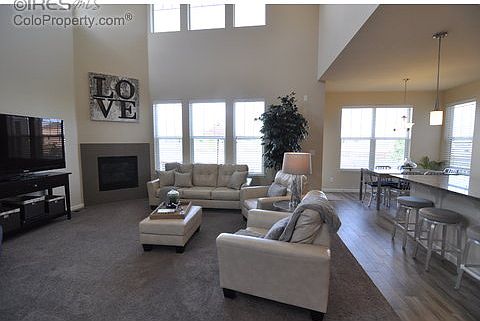 This beautiful home in Timnath Ranch features 3BR + study, 2.5BA, master suite w/5-piece BA, gorgeous living/family room w/gas fireplace, vaulted ceilings, upgrades galore & 3-car tandem finished garage. Designer finishes in gourmet kitchen include slab granite, stainless & wood grain tile floors. Prime corner location w/prof. Landscaped front/backyard backs to green belt & is 5 min walk to pool, fitness ctr. & park. Easy access to Fort Collins, Windsor, Loveland & I-25-Perfect for commuters!