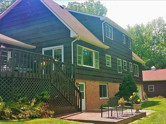 Beautifully maintained 4 BR Cape Cod style home. This home sits on 1.56 acres with mature landscaping overlooking Travis Creek. Beautiful views of trees and nature from every room. This secluded natural setting is only minutes from Center Grove High School. This 4100 sq. foot Home includes: 4 Bedrooms, 2.5 Baths, Eat-in Kitchen, Walk-out Basement with bonus room and large home office, multi-level deck and patio, 2-story entry way with hardwood floors, dining room, huge master bedroom suite with double sinks, garden tub, skylight and walk-in closet, 2 fireplaces, asphalt driveway, alarm system, two car attached garage (24 ft. x 24 ft) on main level, one car garage with work bench in walkout basement. All appliances stay. Laundry room is in basement, but there is partially finished laundry room on top floor next to master bedroom. New septic tank in 2015. There is a large 28 ft. x 32 ft. detached garage with concrete floor and electricity on a separate driveway. CONTACT Chris Pagano Century 21 Greenwood In Thank You
