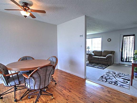 Fabulous 2 bedroom, 1 bath home situated in suburbs on a cul-de-sac. Hardwood floors in kitchen and dining room, tiled counter tops. knotty pine cabinets, double sink, track lighting plus sliding glass door in dining area that exits to large wooden deck and fenced backyard. Addition sliding glass door in bedroom. ceiling fans in living room,both bedrooms and dining room. Utility building on blocks with electricity, large dog run /dog house or could be additional storage. Large fenced back yard