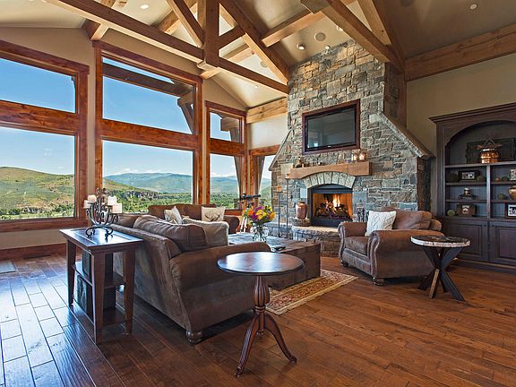 Victory Ranch is so much more than a residence. It is an exciting, diversified experience like no other! Rustic ski home situated beautifully on 1.3 acres features grand living space with unobstructed views from its windowed walls of the majestic red rock mountains, a running river and pristine land. The rustic exterior/interior combines the love of raw materials, including hand hewn sturdy wood beams, stone, wood floors to enhance the ruggedness of the Park City landscape. Three natural stone fireplaces, rich wood cabinets, and those rustic wooden beams grace the interior. This unique home brings the outside, in, beginning with a lofty cathedral ceiling above the foyer entrance. The grand Great Room is framed by massive trusses, which adjoin an over-sized, outdoor deck for added appreciation of Mother Nature. A stone-embedded fireplace comfortably establishes two distinct sections in this space: a dining room/kitchen and a large living room. The traditional rustic kitchen creates an inviting, casual vibe with enough open space (5,516 square feet) to host generous gatherings for holidays and family ski trips, with: Large center island, Gourmet appliances and Hidden walk-in pantry, and main level master suite, and Den/Office. But, it's all fun and games downstairs! There's something for everyone in this oversized media/game room with lots of lounge space, too! The space features an ample theatre room with a wine and full bar area, 4 en-suite bedrooms (bunk room), and steam room. Room for Summer/winter recreational toys in garage. The Victory Ranch experience includes these luxurious amenities: An 18-hole Rees Jones designed golf course, World-class fly fishing, Fishing ponds, Mountain biking trails, 5-stand shooting facility, restaurant and lounge, ski-in/ski-out lodge on Main St. and more than 4,000 acres of backcountry. In addition, there is the Freestone Lodge with riverside dining and bar, The Post with swimming pool and hot tub, the Outfitters Center and Fitness Facility and The Barn. The Barn features include a 75-foot swimming pool with hot tub and winding water slide. The Barn is surrounded by a natural stream and pond, a Great lawn, a bocce ball court, a paddle tennis pavilion, a modern spa, a pizzeria, and half-court basketball gym.