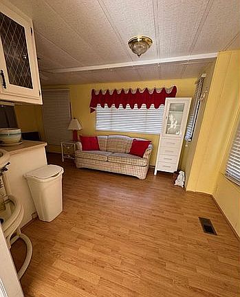 Wonderful home in Lakewood Campground. Great lot with wonderful view. 1BR with room for a double bed, 2nd BR has single pull out bed and large closet, 1 bath, washer and dryer, includes all furniture shown, golf cart, storage building and dues paid through 2024