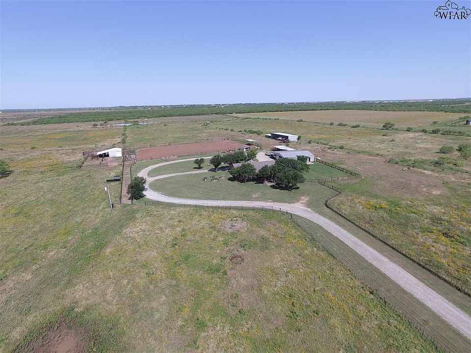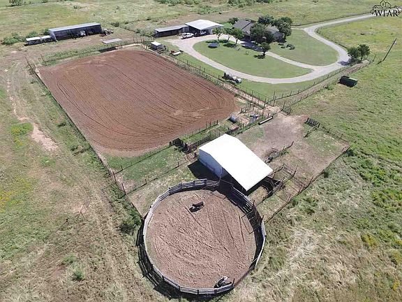 This is an amazing turnkey horse property on 63 acres just outside the city limits in Southwest Wichita County. Includes House with awesome covered porches, horse barn, equipment barn, workshop with covered parking, cattle working pens, and roping arena. The property has 2 improved and native grass pastures that could easily be adjusted into 3 if desired. You will not find another property like this one that has this amount of acres less than 5 minutes from town. Additional acreage available.