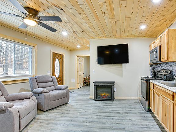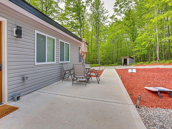 Discover the natural beauty of Northern Michigan at this serene newly constructed 2-bed, 1-bath Cadillac home on 2 acres! Conveniently located near ice fishing, ATV trails, and lakes, this cozy home offers the perfect blend of comfort and convenience. Features include a custom tile shower, tongue and groove ceilings, and new appliances. Enjoy the privacy of the back patio and landscaped firepit area. The home is already wired for the addition of a hot tub and has a spot cleared for RV parking. This home comes fully furnished, including adjustable beds and flat-screen TVs. Located just 3 miles from US131 and 4.5 miles from downtown Cadillac, this turn-key vacation rental is ready for you!