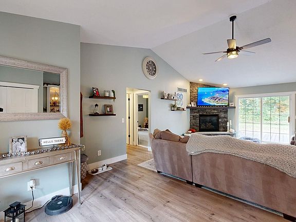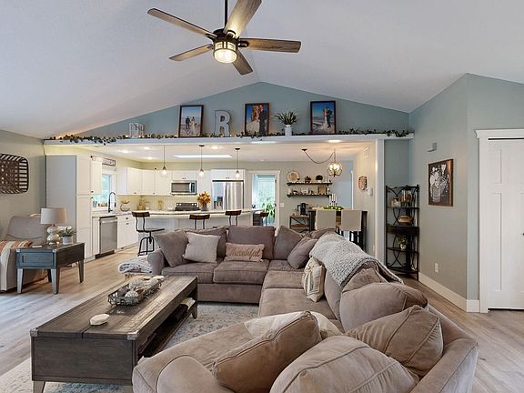 Treat yourself to something irresistible! This home radiates pride of ownership. Beautiful decor throughout, newer kitchen countertops, appliances, fixtures, floor coverings, and freshly painted. Living room with fireplace. Primary bedroom and bath suite. Additional 2 bedrooms and another full bath. Landscaped lot. Newer secondary garage with insulation and forced air furnace. Stained decks. Covered front porch. Furniture is optional.