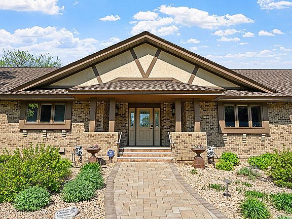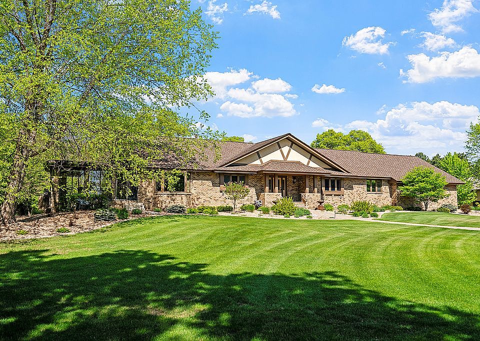 Set on 10 wooded, landscaped acres, this custom-built property feels peaceful and private, yet it’s just minutes from Hwy 10, Sauk Rapids, and St. Cloud. The approach sets the tone—brick pillars, a tree-lined driveway, a circular front drive for guests, and side access to the garage and impressive shop.