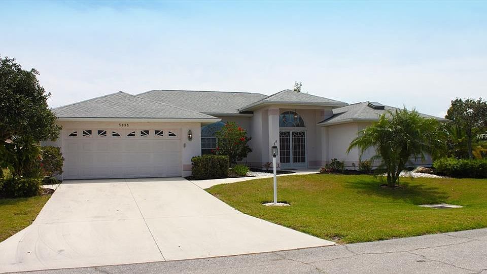 A beautiful custom home with over 2200 square feet of living space along with a lovely outside pool lanai area makes this a valuable property. Situated on a corner lot, enjoy the sunshine on the pool and the view of the lake or relax under the shade in the spacious sitting area under roof. There are 3 sets of pocket sliders: master bedroom, living room and family room, when all are open makes for perfect Florida living as you enjoy the cool breeze. Perfect for entertaining. This 3 Bedroom/2 bath home with a formal living/dining room, large kitchen with family room, tasteful master suite, split plan, all offering a very comfortable floor plan. Recent updates, Air conditioning replaced, re-plumbed, water heater, pool pump, dishwasher plus interior painting and more. This deeded community has low association dues, not in a flood zone, and just minutes away from Manasota Beach and area shopping.