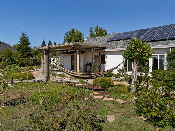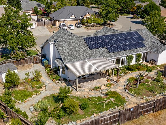 New Paid for Solar! Very well cared for home in one of the best locations in Redding. Large corner lot with amazing landscaped ''Garden of Eden'' back yard. Numerous fruit trees, berries, herbs, veggies, flowers, and walking paths. Rachio sprinkler system with smartphone controls. A slice of paradise. Formal dining could be home office. Classic well appointed kitchen. Spacious rooms and vaulted ceilings. Newer roof, newer upgraded HVAC, newer large covered Alumawood patio. Recirculating hot water system. Steps from peaceful walking trails on Salt Creek. 3 Car garage & Boat/Camper Storage. All appliances included. 2020 High Efficiency Washer. Numerous upgrades on this well cared for home. The past 3 months the solar has produced about $300 a month. Close to town but feels like country.