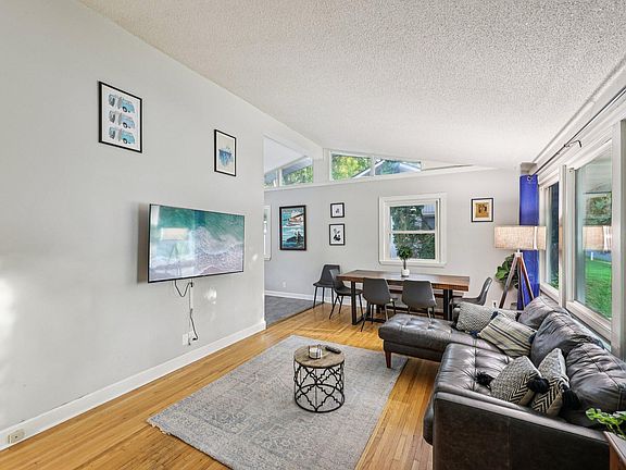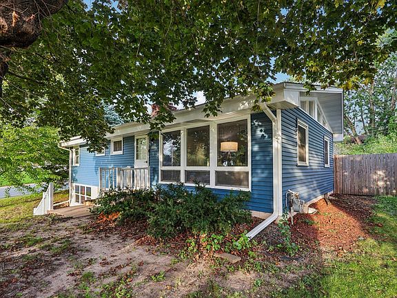Come home to this inviting Mid-Century rambler just .1 miles from Moore Lake and Park — the perfect spot for beach days, walks, or relaxing by the water. This well-maintained home blends character and comfort with vaulted ceilings, vintage metal kitchen cabinets, updated countertops and flooring, and modern updates throughout, including a newer roof, siding, and A/C. The spacious lower level features a cozy wood-burning fireplace, an updated 3/4 bathroom, and a large bedroom — ideal for guests, a home office, or as its current set up, a movie theater! Situated on a corner lot, the home has a fenced-in yard, a concrete patio for outdoor entertaining, and plenty of room to play or garden. Conveniently located close to shopping, dining, a gym, and with easy access to Hwy 694 and a quick 15 minute commute downtown. This home offers both charm and convenience. Don't miss your chance to own this unique gem near the lake — schedule your showing today!
