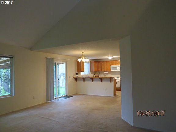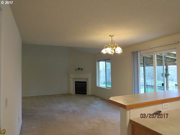 Contemporary home in a nice neighborhood. You will enjoy sitting in front of the gas fireplace in this open floor plan with vaulted ceiling, eat in bar in kitchen, slider to patio. Refrigerator not in good working condition.