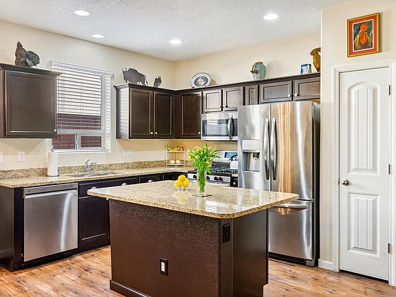 Great floorplan for this 3 bedroom plus bonus room in the highly desirable Enchanted Hills Area. Nicely xeriscaped in the front and backyard, perfect for low maintenance. Enjoy the backyard with wonderful views of the Sandia Mountains. Upgraded vinyl flooring, paint and base boards. Granite countertops in the kitchen.