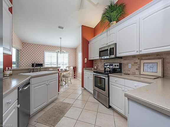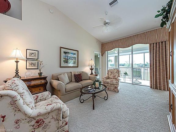 C.15641 - Lovely 2nd floor corner property in excellent condition with huge golf course and lake views with clubhouse and driving range in background. Sunny southern exposure allows excellent natural light throughout this property. Only a short walk to the community amenities. Property is separated from the main street by a landscaped island that affords extra privacy. Some of the upgrades include stainless steel appliances with updated plumbing fixtures and natural stone subway tile back splash. Plantation shutters at most exterior windows. Jenn Air Grill and electric storm shutters on the tiled lanai are convenient and secure. Epoxy floor in the garage makes clean up a snap. This is a lovely property in a very convenient location with excellent views. Don't miss it.