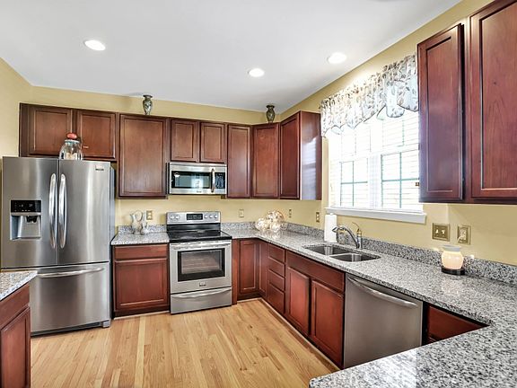 Immaculate and well cared for home located on a corner lot. The kitchen has cherry cabinets and granite counter tops with breakfast bar and hardwood floors. All stainless-steel kitchen appliances convey. Family room with gas fireplace. Combination dining room and living room. Master bedroom w/master bath and walk-in closet. Master bath has separate tub and ceramic tile shower. Lower level is finished, has a full bath and a possible 5th bedroom. Walk-out stairs from the basement makes moving in and out a breeze. Enjoy the covered rear porch made with maintenance free trex decking. This beautiful corner lot is kept nice and green with an in-ground sprinkler system. There is also a 20 x 12 storage shed with electric. The propane tank is owned so you can shop around for the best propane prices.