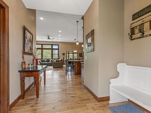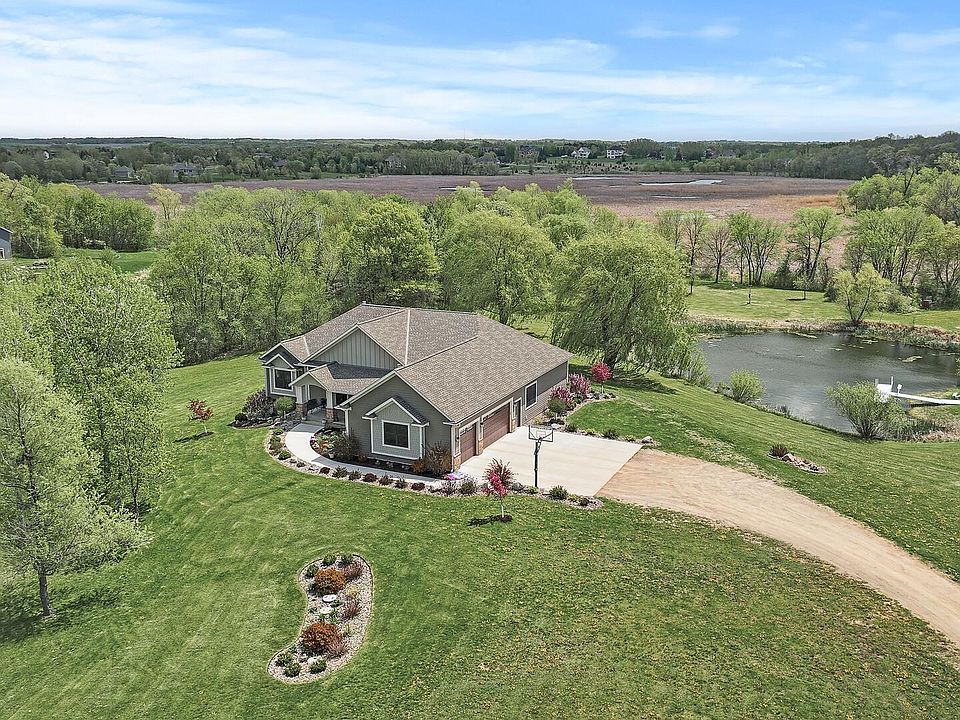 Located on a sprawling 3-acre lot in Prior Lake, this 2017 CUSTOM-BUILT one level home offers 5 bedrooms, 5 bathrooms, a home office, a den, an insulated/heated 3 car garage, and a detached 4th garage. The main level features a well-appointed kitchen with solid Maple 54” cabinetry, granite counters with an impressive 14’ center island, and solid hardwood floors. It also features expansive 12’ ceilings, a gas fireplace with a floor to ceiling stacked stone surround, and sunroom. The lower level is partially finished with a 5th bedroom, 5th bathroom, and den. The remainder of the lower level is 90% complete and ready for your finishing touches. Don’t miss the newly built paver patio and firepit. This one will go fast!