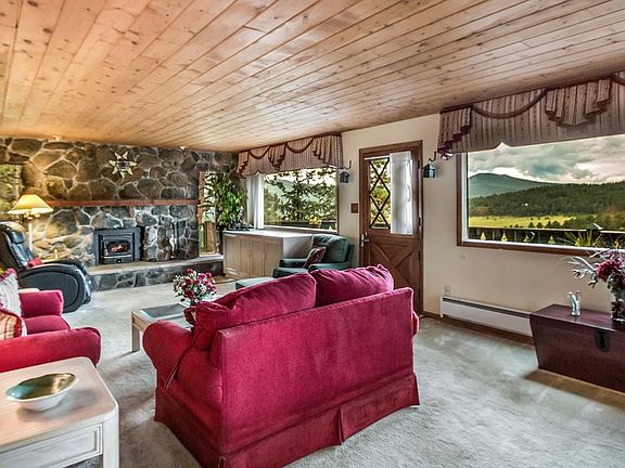 This enchanting mountain property offers a main house and separate cabin in the desirable Bear Mountain Subdivision near $Million+ homes. The charming cabin is ideal as a mother-in-law or guest house, or a private home office. Nestled on a two-acre lot facing a lush green meadow and distant mountain valley views, this property offers a storybook setting with fenced gardens, a dog run, stone walk-ways and bountiful serenity. The main house features a large updated kitchen with a Dacor cook top and convection oven, a new dishwasher, and Corian countertops. The master suite encompasses the entire upper level capturing the views and has a 5-piece bath with a luxurious jetted tub and sauna. This property has been meticulously cared for over the years and has a new on-demand water heater, an upgraded septic system with two leach fields, and enjoys a domestic well which allows for watering animals and gardens. Don't miss out on this rare opportunity. All offers due on Monday 8/21 by 5:00 pm