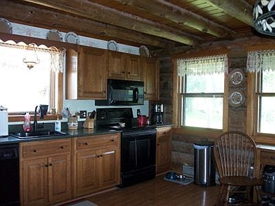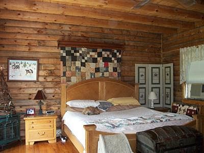 Opportunity is knocking - 40 acres of land with magnificent views. Existing tree farm. Log cabin living at its best. Cathedral ceilings with beams, spacious bedrooms, master suite,4th bedroom/office. A best buy! Woodstove in master does not convey. Taxes are approximate. House being sold w/40 acres. Additional 40 acres with pond available.