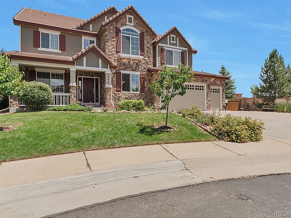 If you are in search of a wonderful, 5 bedroom home with a large yard to LOVE, this is it! A magnificent home at the top of the Cul-de-Sac in the Sorrel Ranch Community. Pack the 3 Car garage and enjoy the stone exterior and walkway to the beautiful, large lot with views. Front Door leads to open plan with Vaulted Ceilings, spacious family room, study, formal dining and the Entertainers kitchen, with Hardwoods and Granite, your buyers are hoping for! Second floor bedrooms include a Master Suite and a laundry room with all the charm and character one should want. Large finished basement has a bathroom already installed and endless possibilities! Easy Access to great trails, Southlands Shopping Center, Reservoir and HOA includes a Community POOL! Summer fun awaits your Buyers. Close to E-470 and Cherry Creek School District!