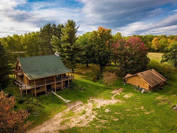 Check out this beautiful 4bed/3bath custom built log home on 80 acres. Logs were harvested from the land. Beautiful fireplace to enjoy on those cool nights. Lots of custom cabinets in the kitchen and laundry room. A private balcony and jetted tub in the master, along with an open loft sitting area and walk-in closet. New roofs on all buildings. There are many apple trees which produce an abundance of fruit in the fall. Blueberry and raspberry bushes, along with grape vines are great for jams and jellies. A variety of wildlife come to visit the property including deer, bear, turkeys, rabbits, and pheasants. Many perennials are loved by the assortment of wild birds and butterflies. Enjoy the views of roaming animals from your rocking chair on the covered porch. Must see to appreciate the beauty!!!