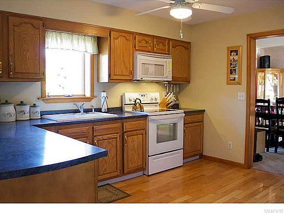 Don't miss this Spacious Newstead Colonial/Cape on 1.5 acres in CLARENCE SCHOOL DISTRICT! Relax on the charming front porch, entertain in the formal dining room or have a family meal on the deck under the included umbrella. Oak kitchen w/hardwood floors and breakfast bar. First floor Master bedroom with En Suite Full Bath and walk in closet. Beautiful French doors, first floor office. Wall to wall carpet upstairs. Fabulous concrete drive with apron, Fire pit w/Belgard pavers, inv. fence, updated landscaping, upgraded exterior lighting, AC 2005, Furnace 2010, HWT 2016, Architectural Roof 2017. Star $435
