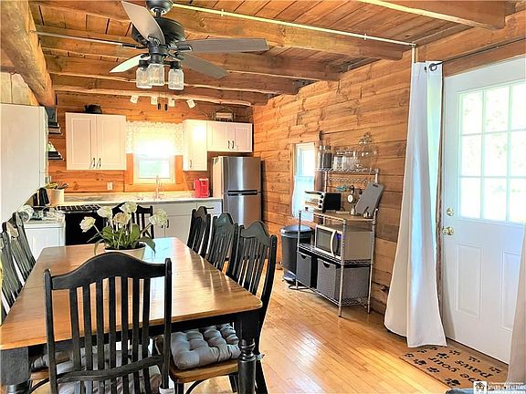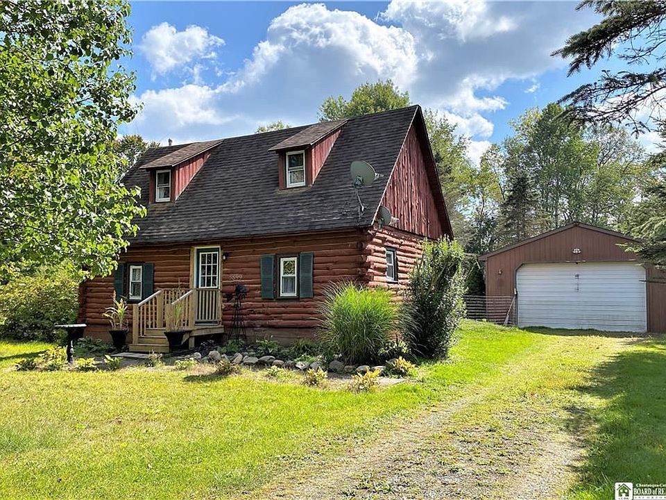Looking for an affordable little getaway near the lake This stylishly rustic Cape Cod-style log home is located on a quiet dead-end road, steps from Snug Harbor Marina, and just 2 miles from Chautauqua Institution. Low tax area! Low utilities. The first floor has an open kitchen/living/dining area, with a pantry/utility room and a completely remodeled bathroom. There are 2 good sized bedrooms upstairs. Comfortably sleeps 8, plus a fold up cot. The spacious lot is just over 1/2 acre, with a big, private back yard. Garage has 100 amp electric and is big enough to store your pontoon boat. The marina is just down the lane, and Prendergast Point boat launch is a 2 minute drive. Summer getaway, year round home, or possible rental potential.
