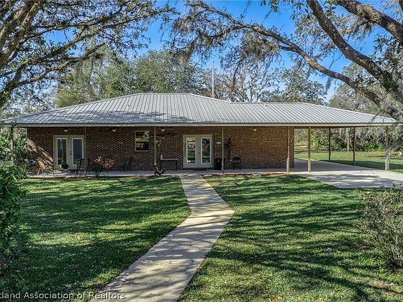 Country road, take me HOME, to the place were I belong...nettled in the beautiful oak hammocks you will find this 3BR 2BA custom brick home on 5 acres of agriculture land with cover porches on both front and back, you will be taken by its quaint, country lifestyle. It's completely fenced and crossed fenced, includes a 16x25 enclosed barn with separate paved area which is ideal for parking a RV or boat. With its spacious living area, this home features room for entertaining with a combined large family room and huge kitchen, high ceilings and wainscoting along the walls. The kitchen also features real wood cabinets, pull out shelves, and plenty of counter space. There is an oversized laundry room with built in desk area that leads to both the master suite and covered carport. This breathtaking serenity home has a metal roof, tankless water heater, well with water filtration system, a newer a/c (ducts cleaned in 2021), front and back yard irrigation system & much MORE! Check it out today!