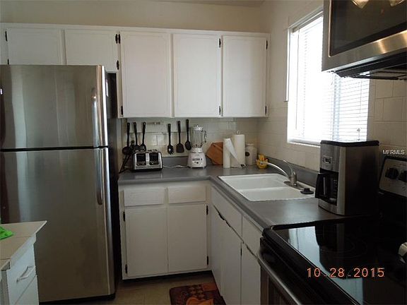 Looking for that move in ready beach getaway? Then you have found it with this newly remodeled unit, that sparkles from top to bottom. New stainless steel appliances including range, refrigerator, garbage disposal and microwave. New ceramic tiled kitchen. New bathroom with ceramic tile, vanity and custom tile surround the tub, with rain showerhead! Spacious Living Room/Dining Room combo! Freshly painted interior with new front door and screen door. Upgraded all new interior doors and hardware, including lanai, freshly tiled and rescreened. All new lights and fans to keep you cool. Added bonus of storage room with tile and fresh paint. All this and the furnishings are included! Enjoy close proximity to beach, restaurants, shopping and bus line. The snow will be coming up north, but it will be sunny here in your new Florida home!