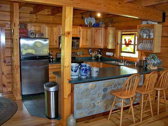 Beautiful Log home on 6.67 acres, unrestricted. Pasture land, two trout streams bordering two sides of the property, Full unfinished basement, Custom interior doors, vaulted ceilings, and wrap around porch. Master offers a balcony and large bathroom.