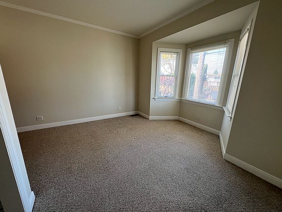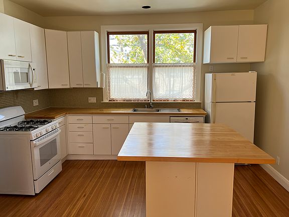 Vintage 2BR/2Ba SF House Large bedrooms with bay windows, carpet, triple reach-in closets and en suite bathrooms, one with a shower over a tub and the other, a walk-in shower. The front of the house is open with original oak floors. The kitchen has a gas stove, microwave with fume hood, disposal, dishwasher, refrigerator and butcher block countertops. Storage island. Gas forced air heating and dual pane windows. Bicycle storeroom, laundry room and off-street parking. Close to all that Emeryville has to offer. Month to month or lease.
