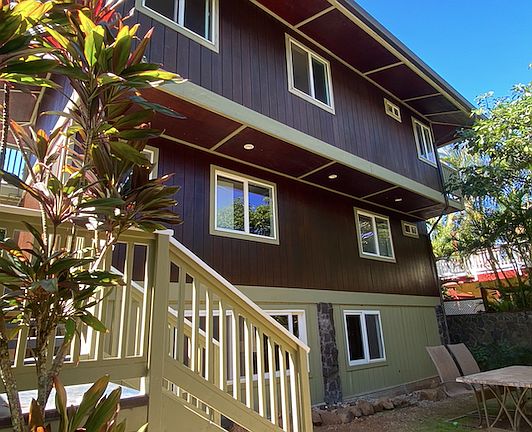Welcome to this custom home surrounded by lush greenery close to North Shore beaches, built in 2010. Enjoy the double wall construction, beautiful wood-look easy care vinyl flooring, and comfortable interior with great tradewind flow. This two floor two bedroom/2 bathroom unit occupies the second and third floors of the three story home. There is a full sized kitchen featuring a gas cooking top, full Bathroom and bedroom on the second floor. The Third floor features a high ceiling, the second bedroom with large walk-in closet, full bathroom with jet stream Tub , and a washer/ dryer on the lovely treetop view lanai. The unit comes partially furnished. No AC, No sub leasing unit, No pets, Non-smoking property. Monthly rent includes utilities; water, gas, Electric, and landscaping. Wi-Fi , TV cable and renter's insurance (required)are the tenant's responsibility. Parking for one vehicle available in neighboring lot. Prime location just 2 minute walk to Sunset beach and Backyards surf spot. Located ideally in quiet, residential neighborhood. This Ocean lifestyle home has space for a single or couple . Home is available for a 6 month- 1 year contract starting March 15, 2025. Owner pay for water and gas and electric. No pet and No smoking allowed.