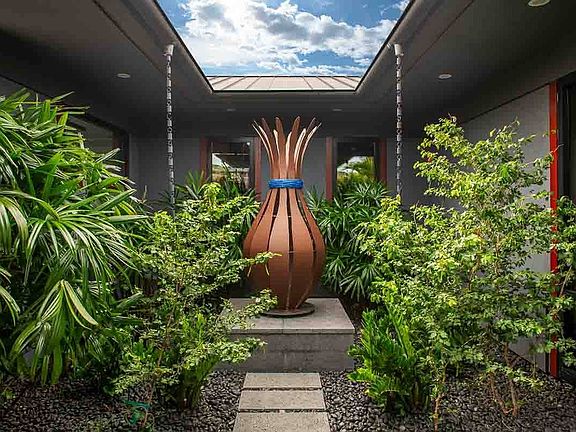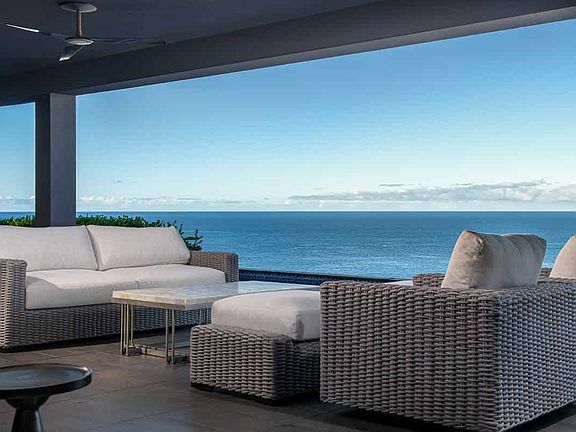 This 3,029 SF home showcases a Hawaiian contemporary design that epitomizes elegance and sophistication. It boasts two spacious ocean-view suites with all bedrooms featuring ensuite baths. The office also enjoys spectacular ocean views. Enjoy the expansive, private, and covered lanai, where a custom 54’ saltwater, glass tile lap pool and jetted spa beckon you to unwind while absorbing the mesmerizing ocean views.