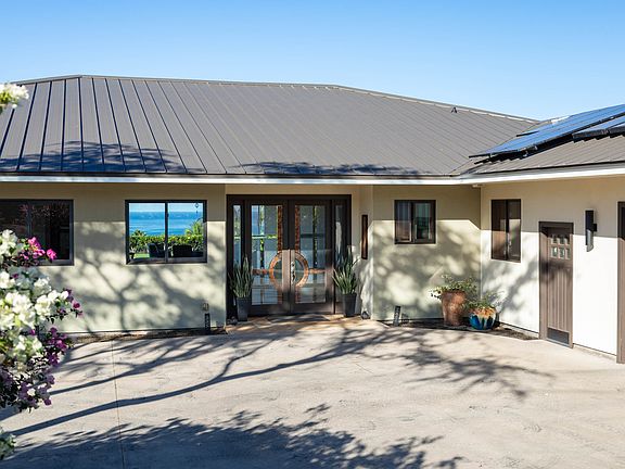 Noteworthy features of the home include 42 owned solar panels, a newly installed roof, freshly painted interiors and exteriors, and a recently serviced septic system.