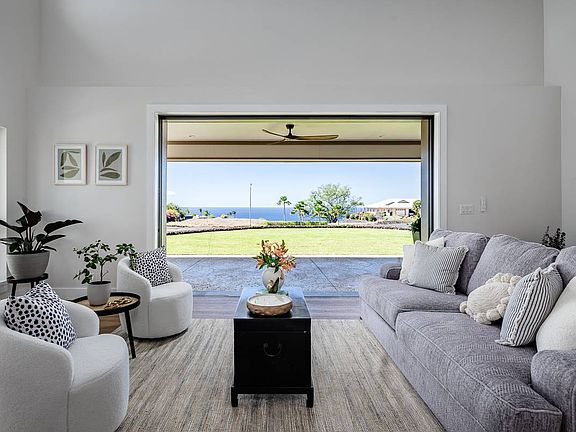 A coastal contemporary masterpiece of brand-new construction featuring a functional lifestyle floor plan of four bedrooms, four bathrooms and approximately 3,400 square feet of living space sited on one acre. Two of the four bedrooms are primary suites, one of which has a separate entrance. This home was intentionally designed with a multitude of realistic lifestyles in mind for those seeking a simply modern and luxurious life in Hawaii. A tall order however this home is exceptionally right on the mark given the fact a locally born woman designed and built it. The first floor features a striking great room featuring 20 ft+/-ceilings leading out to the oversized covered lanai, a lavish kitchen with a double-wide Viking refrigerator, and a combined great room and dining space lined with approximately 18 ft. of pocketing doors opening to the sky, air, and view. Up the elegant sprawling staircase you will find an additional two guest bedrooms and a full bathroom, as well as the primary ocean view suite. With large windows framing the Pacific, this room demands attention. An expansive walk-in closet, oversized glassed-in shower and soaking tub, double vanities and a makeup station, this suite spares no luxury. Modern meets cozy and purpose in this high quality and untouched new build in one of the most ideal and desirable communities along the Kohala Coast of the Big Island. Kohala by the Sea is a private, gated enclave of one of a kind custom home all situated on 1+-acre parcels. The privacy, ocean views, proximity to world class beaches, close by resort amenities and Hawaii’s best private schools create this ideal location. Located in the community of Waimea with 6 Farmer's Markets a week! Start anew in this brand-new home to call your own.