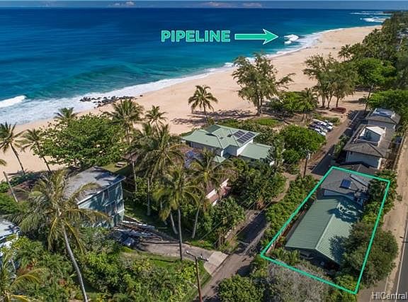 Amazing location! Steps to Pipeline and one of the most beautiful beaches in Hawaii. 2 bed/1 bath home with separate 1 bath studio, includes 1 car garage and office. Recently remodeled, cool and clean. Covered lanai looks out to landscape yard that is enclosed with rock wall, great for entertaining. First Open to the public Sunday April 15th 10am to 2 pm.