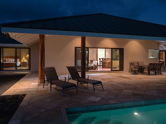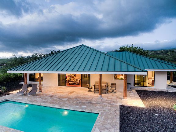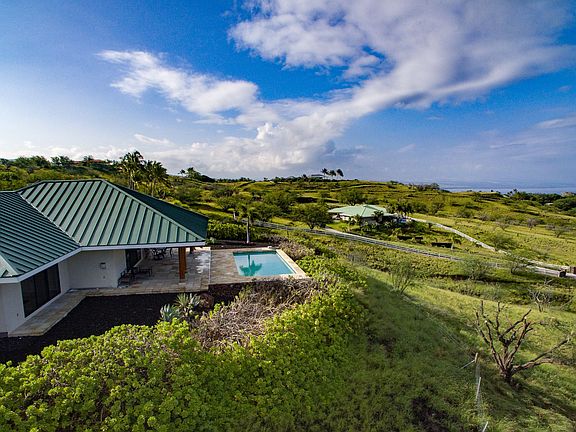 Top of the hill, endless coastline and ocean view home in the desirable Heather's section of Kohala Ranch at an approximate elevation of 650 feet. The 180 degree + panoramic view encompasses Mauna Kea, Mauna Loa, Hualali, Haleakala and the Kohala Mountains. Built for indoor/outdoor living with over 1000 square feet of covered lanai and easy access to the kitchen and great room. Enjoy your coffee in the morning or take a cooling dip in the pool in the afternoon. Plenty of room for entertaining in this open floor plan. Hardwood flooring in the great room and kitchen and ceramic tile in the bedrooms and bathrooms make this a very easy to maintain home. The master bedroom and bath are on one side of the home and guest bedroom and bath on the other for added privacy. The yard is beautifully landscaped with an assortment of tropical plants and fruit trees and requires minimal maintenance. A complete photo voltaic system was installed in November 2015. With easy maintenance and very low utilities this is a very easy to live in home or has great potential as a vacation rental. Furnishings are negotiable under a separate Bill of Sale.