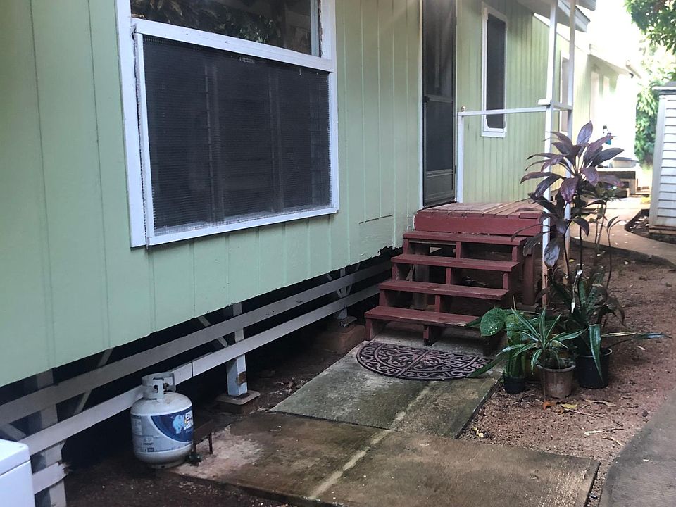 This property is a located on Kamehameha Hwy; Mountain side, very close walk to Keiki Beach, Sharks Cove and the bike path. Foodland is just down the road. There are three one bedroom rentals attached. Thus, the patio and washer and dryer are shared with other tenants. Freshly painted. New Showers, fixtures and vanities in the bathrooms. Parking area is off street on the property parking for 2 - 4 cars (parked behind) Rent includes electricity; to a certain rate and water. Electricity is included unless usage rate increases then there will be increases to cover difference . There is absolutely NO AC units allowed! Absolutely NO PETS no matter how small, NO PETS! NO SMOKING This property has other tenants thus there is absolutely NO SMOKING ALLOWED inside or outside. There is parking for 2-4 cars; 4 cars if parked behind. Washer and Dryer are shared with the other tenants as is the covered patio area. This property is located on Kamehameha Hwy. It is not fenced and there is no yard. 3200.00 damage security deposit and first month rent required at move in This is the great rental for surfers, ocean enthusiasts' and those who wish to live in the "country" and experience the North Shore.