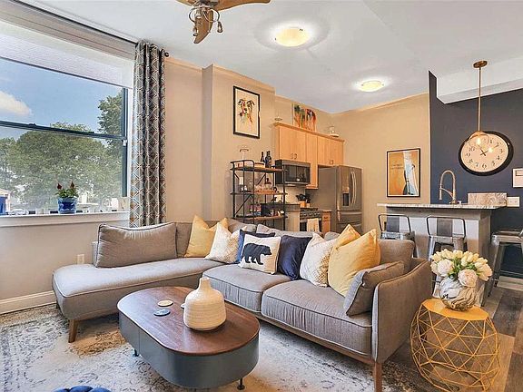 Beautiful 2 bedroom 1.5 baths Soho style loft in boutique Victory Lofts features 12 foot ceilings, designer finishes, gorgeous multi-tonal floors throughout, Open living/dining room with orb light, Sputnik chandelier, fully equipped kitchen with top of the line smart appliances, quartzite counter tops with breakfast bar, large master bedroom with customizable wall to wall closet, beautifully designed bath with soaking tub, travertine tiles, and a powder room off the dining room, washer/dryer in unit, central A/C and a Nest system complete this unit. Elevator building and pet friendly. Assigned full indoor garage parking on site and gym in lobby. Close to Shoprite and to bus/train. No smoking building. Rent is due 1st of every month. Electronic transfer of rent preferred. Parking features: 1 Car, Covered, Garage.